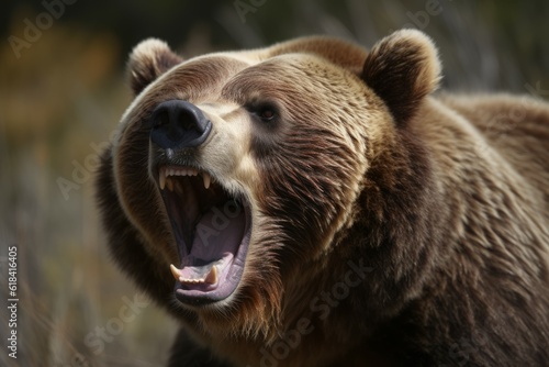 Obraz premium Grizzly bear face. Generate Ai