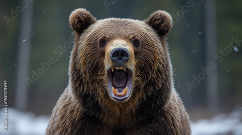 © BloomArt, Obraz premium Grizzly Bear Growling, Showing Teeth