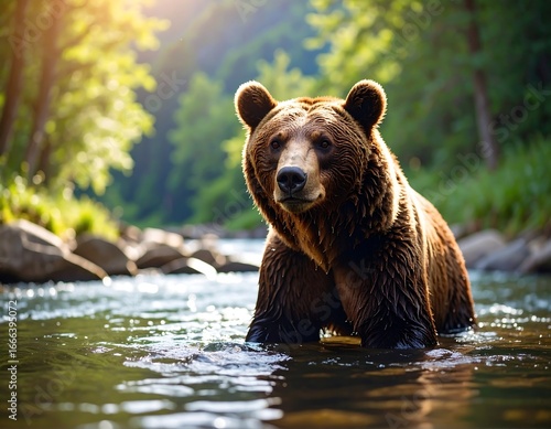 Obraz premium Grizzly bear in a stream