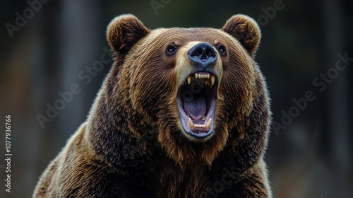 © labirint, Fototapeta premium Grizzly bear roaring in forest, close-up