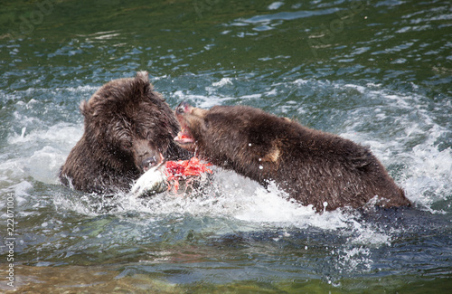 © DaiMar, Fototapeta premium Grizzly Bears Fighting Over Salmon