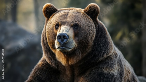 © atipong, Obraz premium Grizzly Portrait: Soft Pastels Powerful Shoulders Forest Backdrop