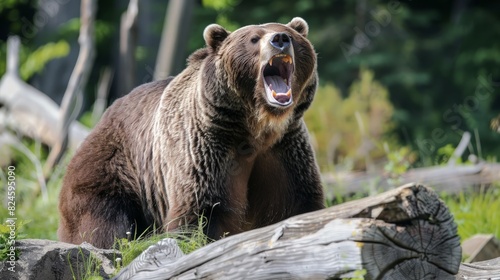 © sobartea, Obraz premium Grizzly Roars Warning. generative ai