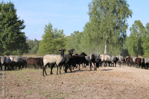 © S. Lorenzen-Mueller, Obraz premium Große Schaf- und Ziegenherde auf dem Weg zu den Weidegründen.