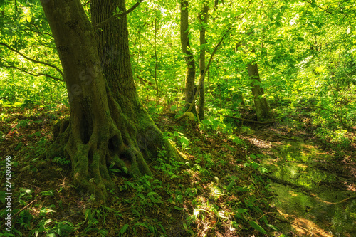 © ohenze, Obraz premium Große Wurzel und Bäume im Nationalpark Hainich