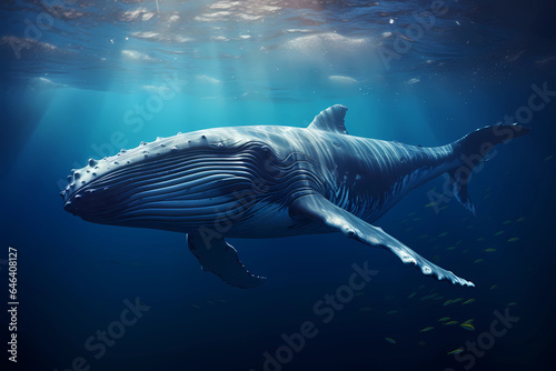 Naklejka premium großer Wal (Blauwal, Buckelwal, Grauwal) im Ozean unter der Oberfläche, erstellt mit generativer KI