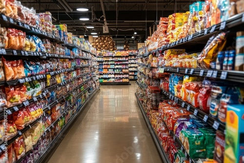 Fototapeta premium Grocery Store Aisle with Variety of Snacks and Goods