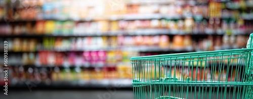 © Armin, Fototapeta premium Grocery store interior with shopping cart