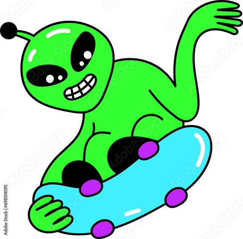 © TWINS DESIGN STUDIO, Naklejka premium Groovy alien with skateboard illustration
