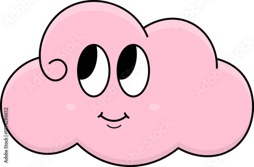 © Maya, Naklejka premium Groovy cute cloud character. Retro cloud with cartoon face expression illustration. Vector isolated.