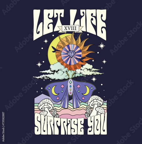 © damla, Obraz premium groovy frame butterfly mystic sun moon
