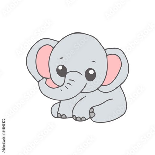 © Griyolabs, Naklejka premium Groovy Safari Animal Collection Vector, Hand Drawn Elephant Color and Outline Coloring Page for Book Animals for Kids.
