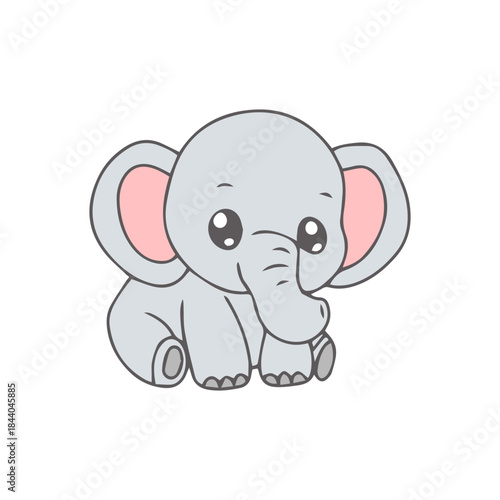 © Griyolabs, Naklejka premium Groovy Safari Animal Collection Vector, Hand Drawn Elephant Color and Outline Coloring Page for Book Animals for Kids.