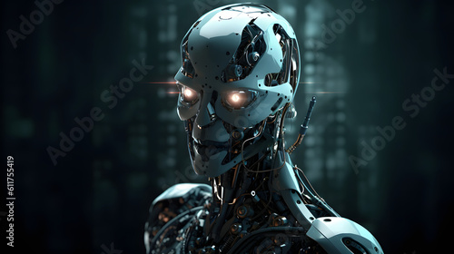 © Marvin Dgn, Naklejka premium gros plan d'un visage de robot aux yeux luisants, généré par IA