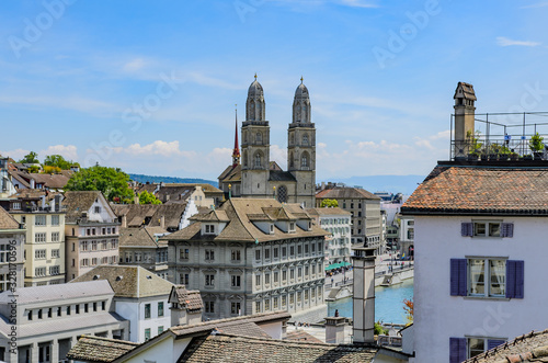 Obraz premium Grossmünster seen from the Lindenhof hill, Zürich, Switzerland.