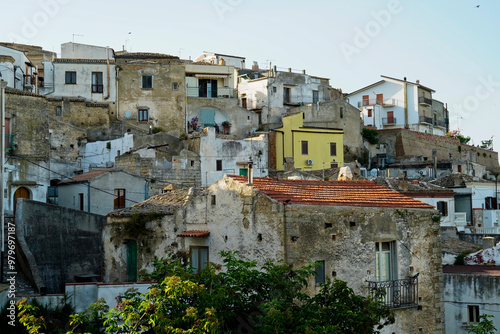 Fototapeta premium Grottole, la chiesa di Diruta, il castello di Sichinulfo e il borgo antico,...