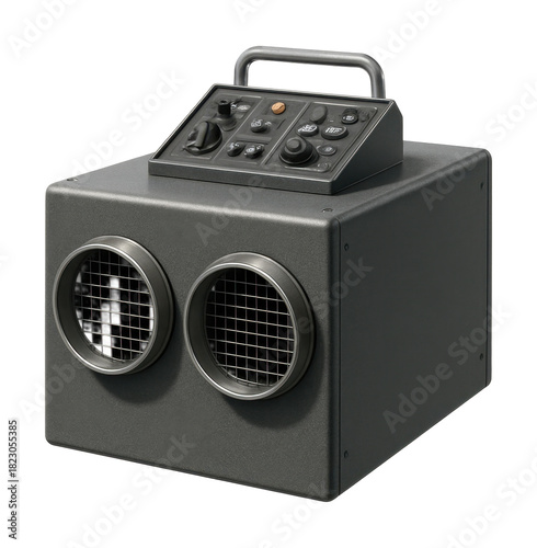 Fototapeta premium Ground power unit featuring dual exhaust vents and a top-mounted control panel.