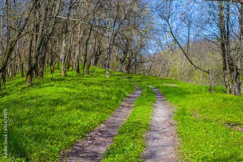 © Yuriy Kulik, Obraz premium ground road in green summer forest, beautiful nature scene