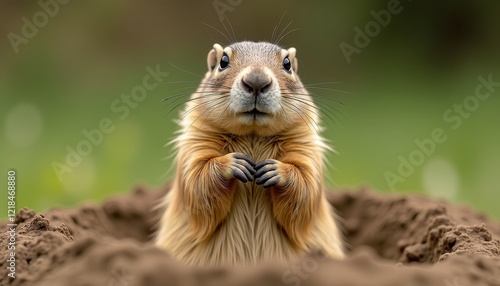 © Crazy Stock – Studio, Fototapeta premium Groundhog Day Celebration: Squirrel Stands on Back Legs Against Green Background