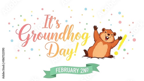 Fototapeta premium Groundhog day celebration with cartoon groundhog