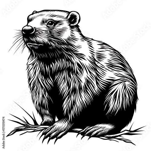 Obraz premium Groundhog etching style illustration.