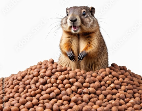 © Jovan Svorcan, Obraz premium Groundhog on a Hazelnut Throne