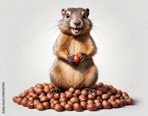 © Jovan Svorcan, Obraz premium Groundhog on a Hazelnut Throne
