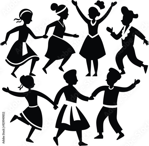 © Parvin, Obraz premium Group Dance Elegant Silhouette Vector Illustrations