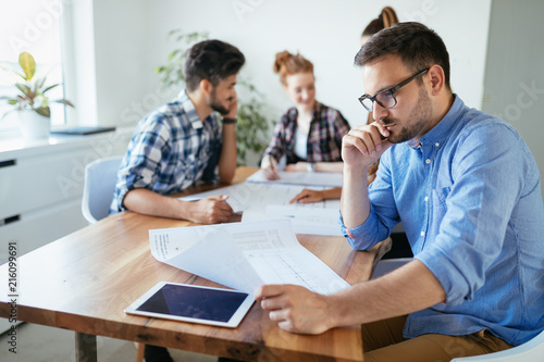 © NDABCREATIVITY, Obraz premium Group of architects and designers working and collaborating on project