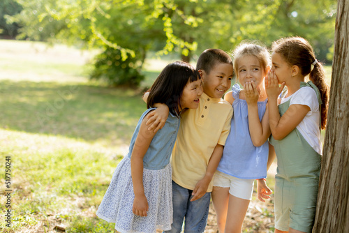 Obraz premium Group of asian and caucasian kids having fun in the park