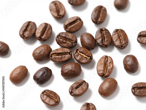 © Sopear, Obraz premium group of beans on white, brown coffee beans isolated on white background, top view