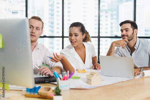 © Nattakorn, Fototapeta premium Group of business creative designer team meeting and discuss for planning project in office