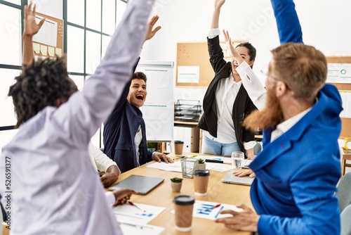 Fototapeta premium Group of business workers smiling happy celebrating with hands together at...