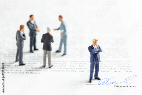 Obraz premium Group of businessmen in a suit and tie stipulate a signed contract. Signature...