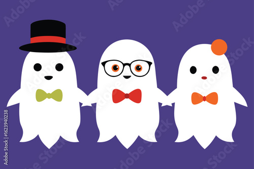 Obraz premium group-of-cartoon-ghosts-with-accessories---hats--g (1).eps