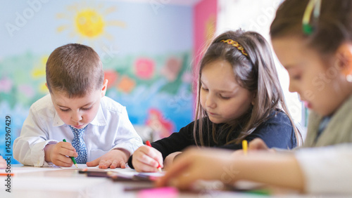 © Aleksandar, Fototapeta premium Group of children in classroom drawing