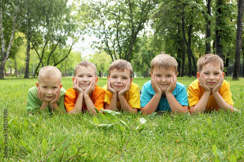 © Sergey Nivens, Fototapeta premium Group of children in the park