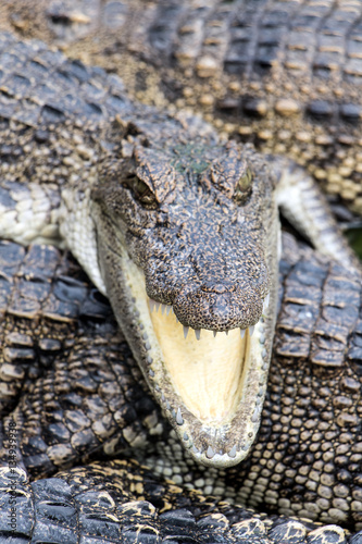 © milkovasa, Naklejka premium Group of crocodiles crawling over each other.
