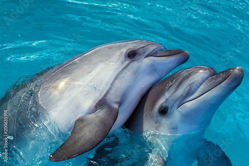 © natasnow, Obraz premium Group of cute smart dolphins in the ocean