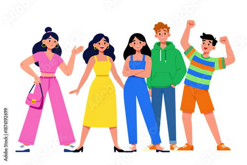 © ViVn, Obraz premium Group of diverse and stylish young people standing together.