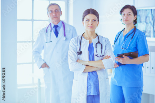 Fototapeta premium Group of doctors and nurses standing in the hospital room