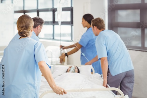 © WavebreakMediaMicro, Obraz premium Group of doctors carrying woman patient