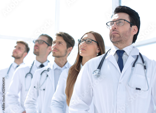 Fototapeta premium group of doctors standing in a row and looking at a copy space