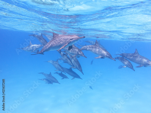 Obraz premium Group of dolphins in tropical sea, underwater