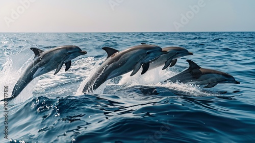 © Kanan, Fototapeta premium Group of dolphins jumping from the sea