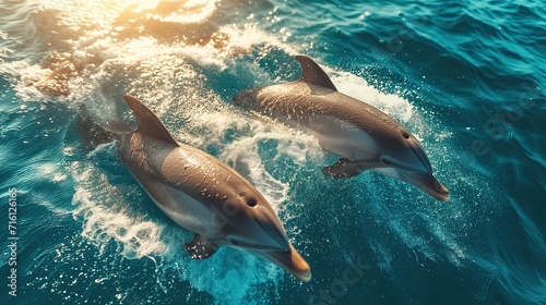 © KhaizanGraphic, Fototapeta premium Group of dolphins swim on surface