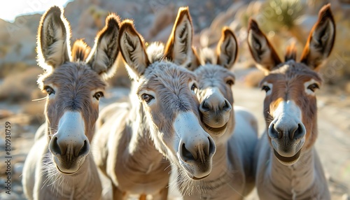 Obraz premium Group of donkeys in the desert, close-up view