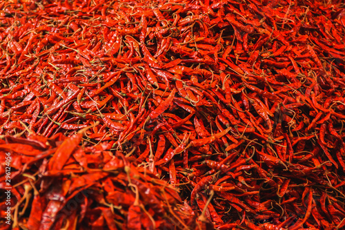 © Aonprom Photo, Fototapeta premium Group of dry red chili heap for sale in market.