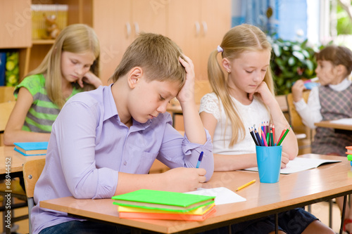 Fototapeta premium Group of elementary school pupils takes the test in class