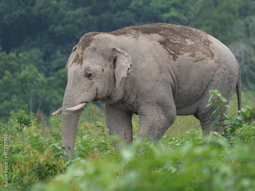 © Jatuporn, Naklejka premium Group of elephant cross road at khao yai national park , Thailand